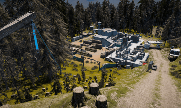 I level designed a lumber mill themed outpost for Far Cry 5,