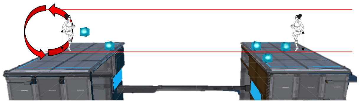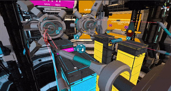That’s why I added a Diegetic UI element in the form of a Jump Streak bar located in front of the player. It counts the amount of successful jumps the player has made in a row and rewards the player with the spawning of a Bonus Holo upon reaching a streak. This proved to be highly motivating!