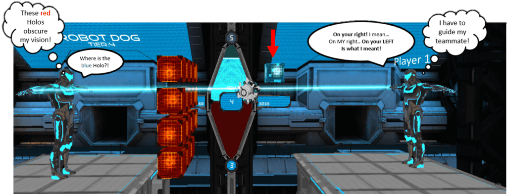 Requires the player who can see the blue Holo to guide the other player’s movement towards said Holo